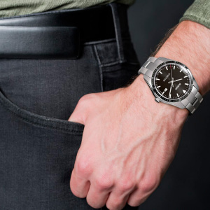 Корпус: Нержавеющая сталь, безель из высокотехнологичной керамики чёрного цвета. Чёрный циферблат. Стрелки и часовые индексы серебристого цвета с люминесцентным покрытием. Антибликовое покрытие сапфирового стекла позволяет циферблату быть хорошо читаемым и видимым даже в самые солнечные дни. Диаметр 44 мм. Водозащита 100 м.