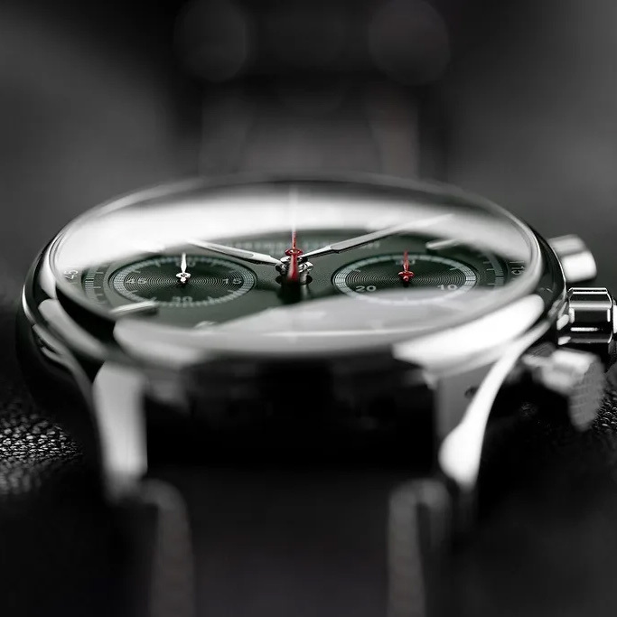 Корпус: Корпус выполнен из высококачественной стали с повышенной устойчивостью к коррозии, поверхности с полировкой до зеркального блеска. Циферблат зеленого цвета. Благодаря двухкомпактному расположению дополнительных циферблатов, белому цвету фона и красным стрелкам он напоминает приборные панели классических автомобилей Healey. Полированные стальные стрелки и часовые индексы покрыты люминесцентным составом SuperLuminova. Сапфировое стекло устойчивое к царапинам с антибликовым покрытием. Диаметр: 42 мм. Водозащита: 50 м.