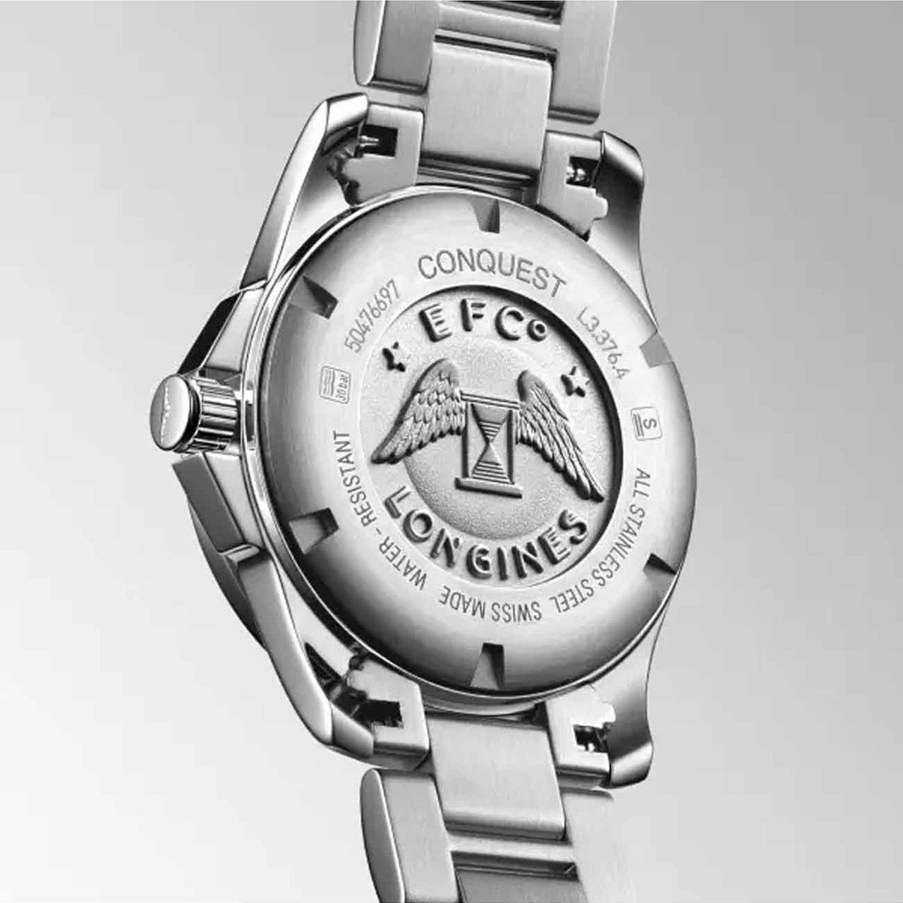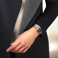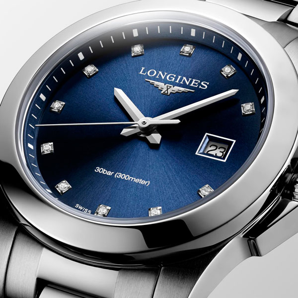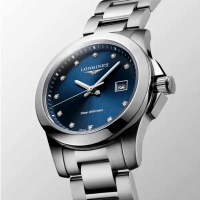 Корпус: Нержавеющая сталь. Циферблат синий, декорирован 11 бриллиантами, серебристые стрелки. Сапфировое стекло с антибликовым покрытием. Водонепроницаемость 300 метров. Размер 34 мм.