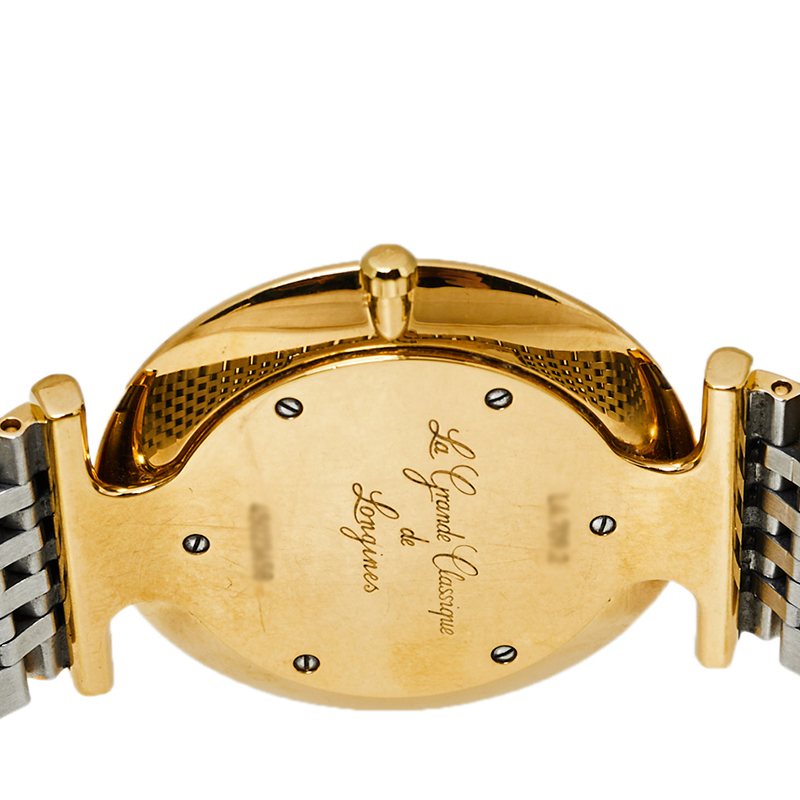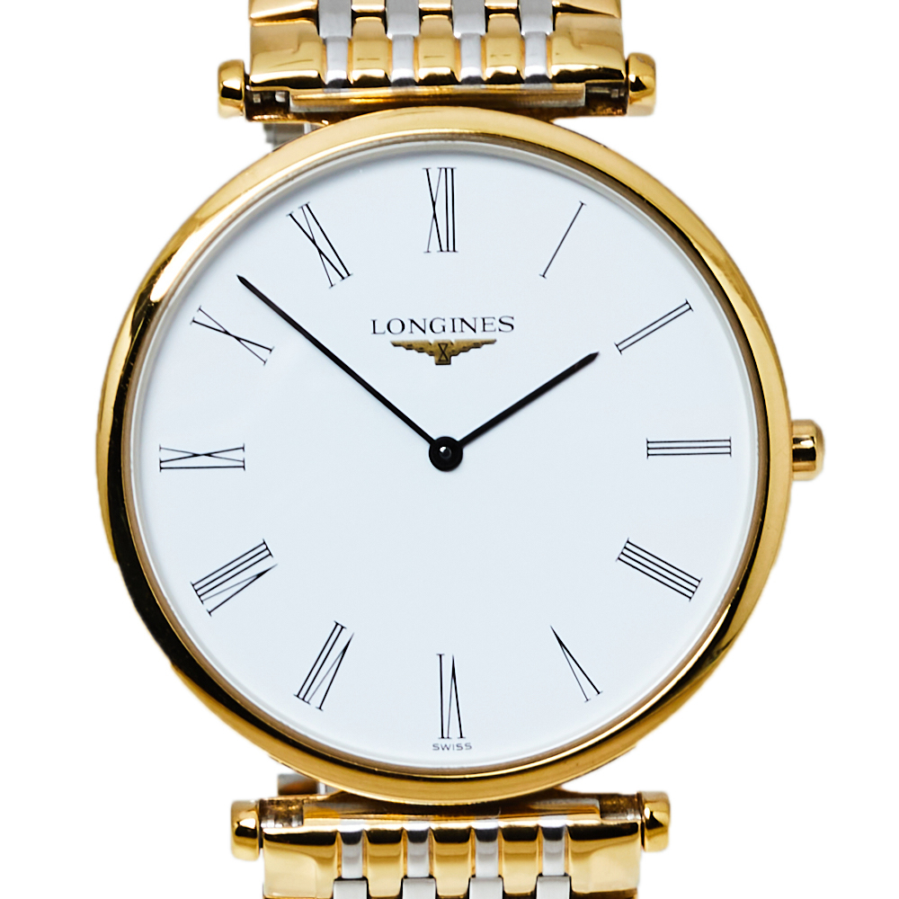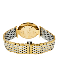 Корпус: Нержавеющая сталь+ PVD-покрытие из желтого золота, сапфировое стекло. Размер 33 мм, водонепроницаемость 30 метров. Циферблат – белый с римскими цифрами.