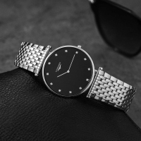 Корпус: Нержавеющая сталь, водонепроницаемость 30 метров, стекло сапфировое. Диаметр 37,0мм. Циферблат чёрный, украшен 12 бриллиантами.