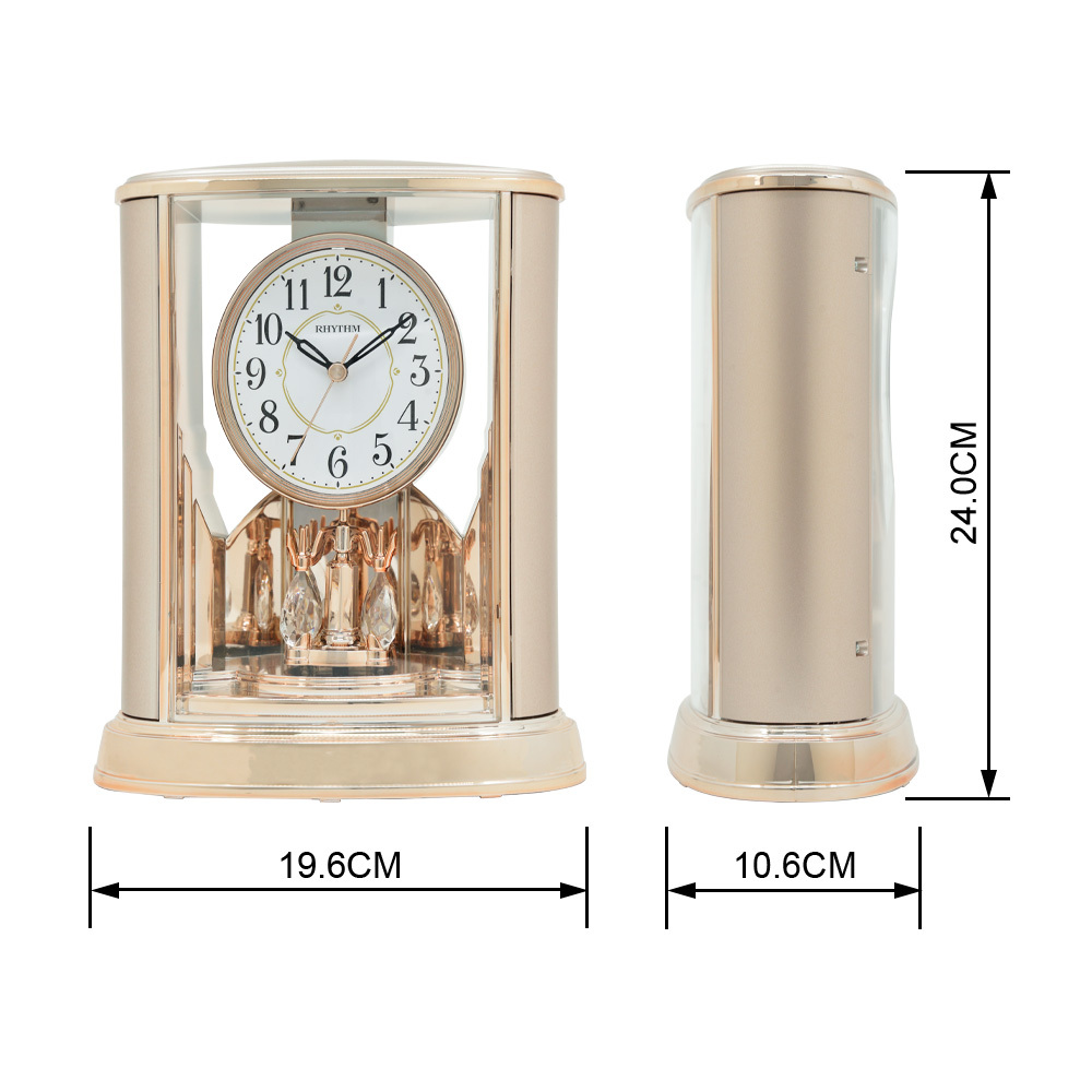 Цвет: Цвет корпуса - золотистый, цифры арабские чёрного цвета. Вращающийся маятник.