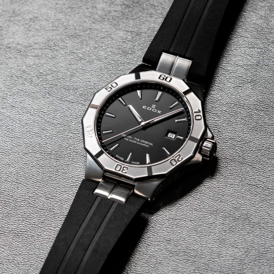 Ремешок: Чёрный каучук с классической застежкой из нержавеющей стали.