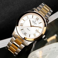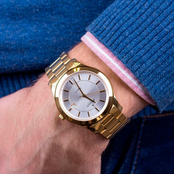 Корпус: Корпус выполнен из высококачественной стали с повышенной устойчивостью к коррозии с PVD покрытием. Металлик циферблат в центральной части украшен гильошированным узором. Позолоченные полированные стрелки и часовые индексы. Сапфировое стекло устойчивое к появлению царапин, обладающее высокой прозрачностью. Диаметр: 42 мм. Водозащита: 50 м.