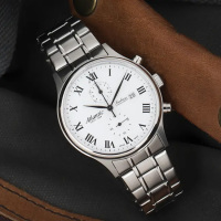 Ремешок: Браслет из нержавеющей стали, поверхности с матовой шлифовкой - сатинированием и полировкой. Браслетная раскладывающаяся застежка с дополнительным защитным фиксатором, гравировка с названием марки и ее эмблема.