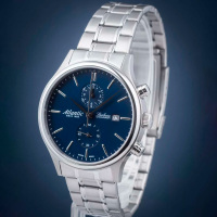 Функции: Центральные часовая и минутная стрелки, маленькая секундная стрелка на «6 часов». Апертура даты на «3 часа». Хронограф с 30-минутным счетчиком на "12 часах". Центральная секундная стрелка хронографа.