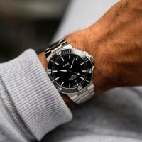 Корпус: Многокомпонентный корпус из нержавеющей стали, чёрный керамический ободок с минутной шкалой. Сапфировое стекло, выпуклое с обеих сторон, внутреннее антибликовое покрытие. Индексы и стрелки покрыты составом Superluminova. Черный циферблат. Завинчивающаяся прозрачная задняя крышка корпуса с минеральным стеклом. Завинчивающаяся заводная головка из нержавеющей стали. Диаметр 43,5 мм. Водонепроницаемость 300 метров.