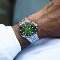 Корпус: Многокомпонентный корпус из нержавеющей стали. Керамический безель с минутной шкалой вращается в одном направлении. Циферблат выполнен по технологии Sunray (солнечные лучи) зелёного цвета. Сапфировое стекло, выпуклое с обеих сторон, внутреннее антибликовое покрытие. Индексы и стрелки покрыты составом Superluminova. Завинчивающаяся задняя крышка со специальной гравировкой. Завинчивающаяся заводная головка из нержавеющей стали. Диаметр: 43,5 мм. Водонепроницаемость: 300 метров.