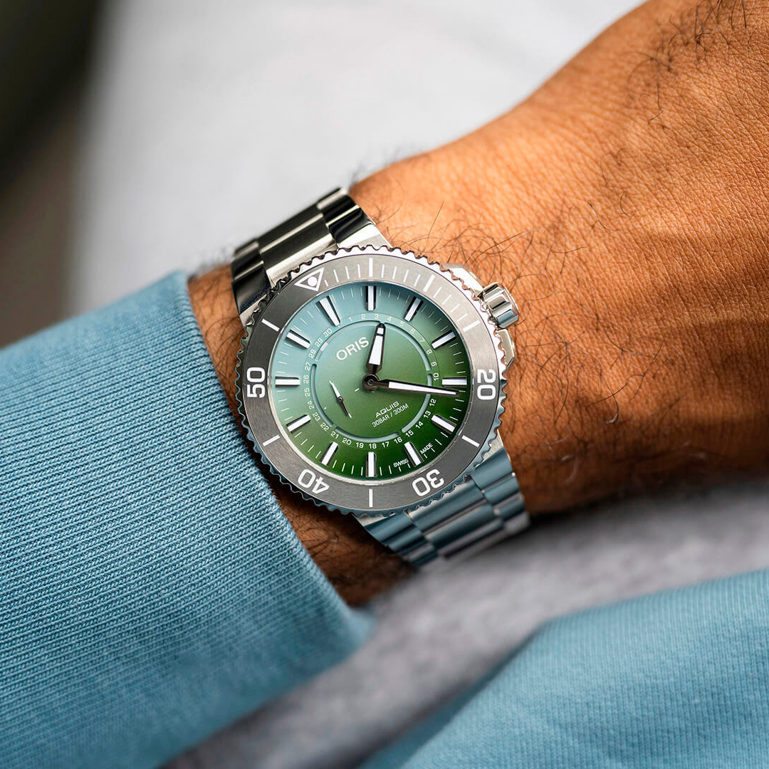 Ремешок: Браслет из нержавеющей стали с запатентованной компанией Oris раскладывающейся застёжкой. Поставляется в комплекте со сменным каучуковым ремешком.