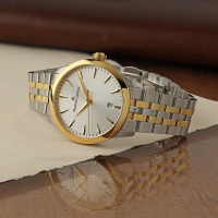 Корпус: Круглый корпус выполнен из нержавеющей стали 316Lс частичным PVD-покрытием, поверхность с матовой шлифовкой – сатинированием и полировкой до алмазного блеска. Серебристый циферблат с эффектом солнечных лучей (Sunray). Накладные часовые индексы и клиновидные стрелки в стиле Dauphine с PVD-покрытием. Сапфировое стекло с антибликовым покрытием устойчиво к царапинам сохраняет прозрачность на протяжении многих лет. Заводная головка украшена фирменным логотипом. Диаметр корпуса составляет: 39 мм., толщина - 9 мм. Класс водозащиты: 10 бар (100 метров), позволит плавать.