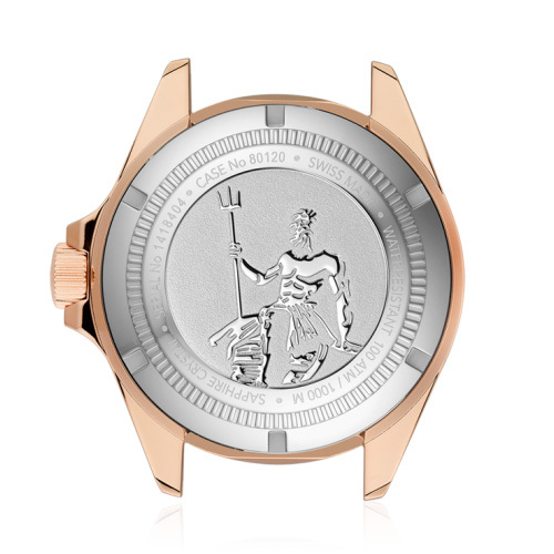 Корпус: Корпус из высококачественной нержавеющей стали с PVD покрытием, керамический безель чёрного цвета. Чёрный циферблат. Часовые индексы и стрелки позолоченые, полированные с покрытием Super-LumiNova®. Сапфировое стекло с антибликовым покрытием. Однонаправленный безель вращается со щелчками в направлении против хода стрелок, рельефная поверхность с гравированной разметкой в виде больших цифр. Завинчивающаяся заводная головка с защитой. Диаметр: 44 мм. Водонепроницаемость: 1000 м. Часы выдержат погружение с аквалангом на большую глубину.