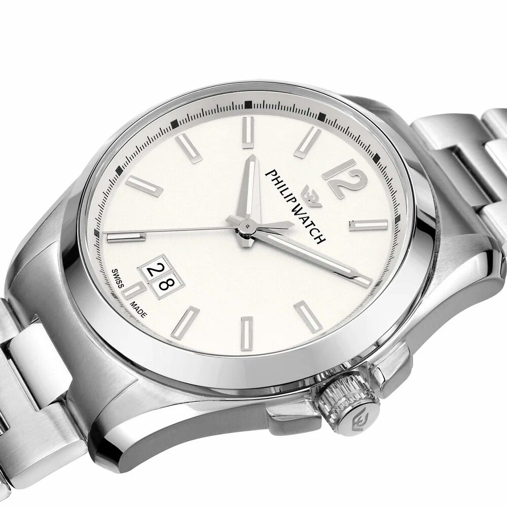 Корпус: Корпус выполнен из высококачественной стали с повышенной устойчивостью к коррозии, поверхности с матовой шлифовкой – сатинированием и полировкой до зеркального блеска. Циферблат белого цвета. Люминесцентный состав на стрелках и на разметке циферблата. Сапфировое стекло, это лучшее стекло для наручных часов, которое не царапается при механическом воздействии, его можно повредить только алмазом. Диаметр корпуса: 43 мм. Водозащита до 100 метров позволит плавать.