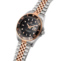 Корпус: Корпус выполнен из высококачественной стали с повышенной устойчивостью к коррозии, поверхности с матовой шлифовкой – сатинированием и полировкой до зеркального блеска с частичным PVD покрытием. Однонаправленный безель вращается со щелчками в направлении против хода стрелок. Циферблат чёрного цвета. Люминесцентный состав на стрелках и на разметке циферблата. Сапфировое стекло, это лучшее стекло для наручных часов, которое не царапается при механическом воздействии, его можно повредить только алмазом. Диаметр корпуса: 42 мм. Водозащита до 100 метров позволит плавать.