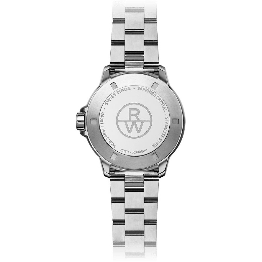 Ремешок: Браслет с литыми звеньями в 3 ряда из нержавеющей стали. Браслетная застежка “бабочка”, раскладывающаяся при нажатии на кнопки двойной системы блокировки, украшена логотипом Raymond Weil.
