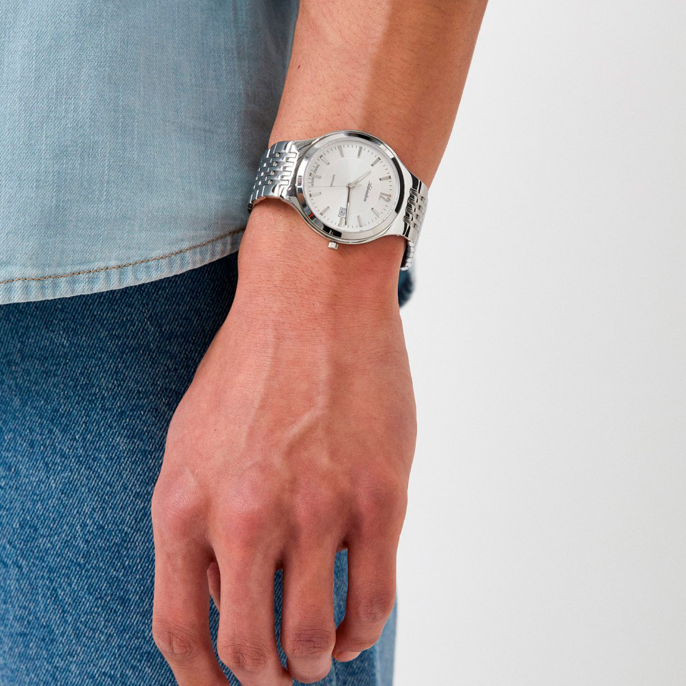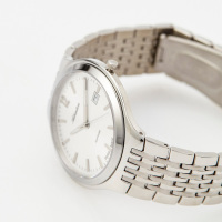 Корпус: Круглый корпус выполнен из полированной нержавеющей стали. Светлый циферблат выполнен по технологии Sunray (солнечные лучи). Накладные часовые индексы выполненый из стали. Стрелки с покрытием SuperLuminova, которое обеспечивает подсветку в темное время суток. Сапфировое стекло устойчивое к возникновению царапин. Диаметр корпуса составляет 42 мм, толщина 7 мм. Водостойкость WR 50 (мытье рук, дождь).