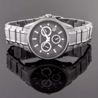 Функции: Центральные часовая и минутная стрелки, секундная стрелка вынесена на отдельный циферблат. Дата, день недели. 12-ти и 24-х часовой формат отображения времени.