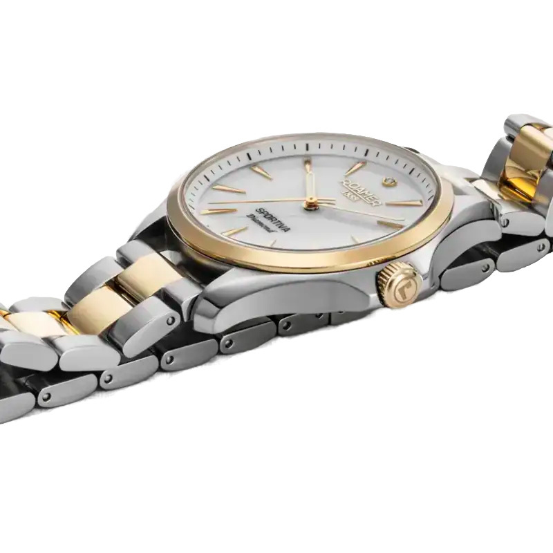 Корпус: Корпус выполнен из высококачественной нержавеющей стали 316L с полировкой и матовой шлифовкой - сатинированием с частичным IP покрытием. Перламутровый циферблат белого цвета декорирован 1 бриллиантом, золотистые стрелки и часовые индексы. Стрелки с люминесцентным покрытием для оптимальной разборчивости в условиях низкой освещенности. Сапфировое стекло с антибликовым покрытием. Диаметр: 36 мм. Водозащита: 50 м.