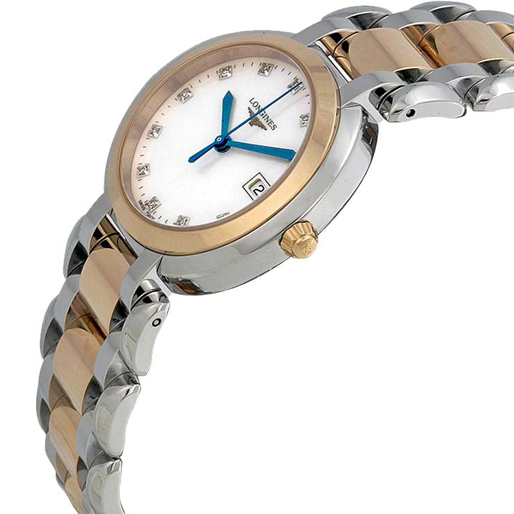 Корпус: Нержавеющая сталь/розовое золото, водонепроницаемость 30 метров, сапфировое стекло, 11 бриллиантов на циферблате. Размер 30 мм.