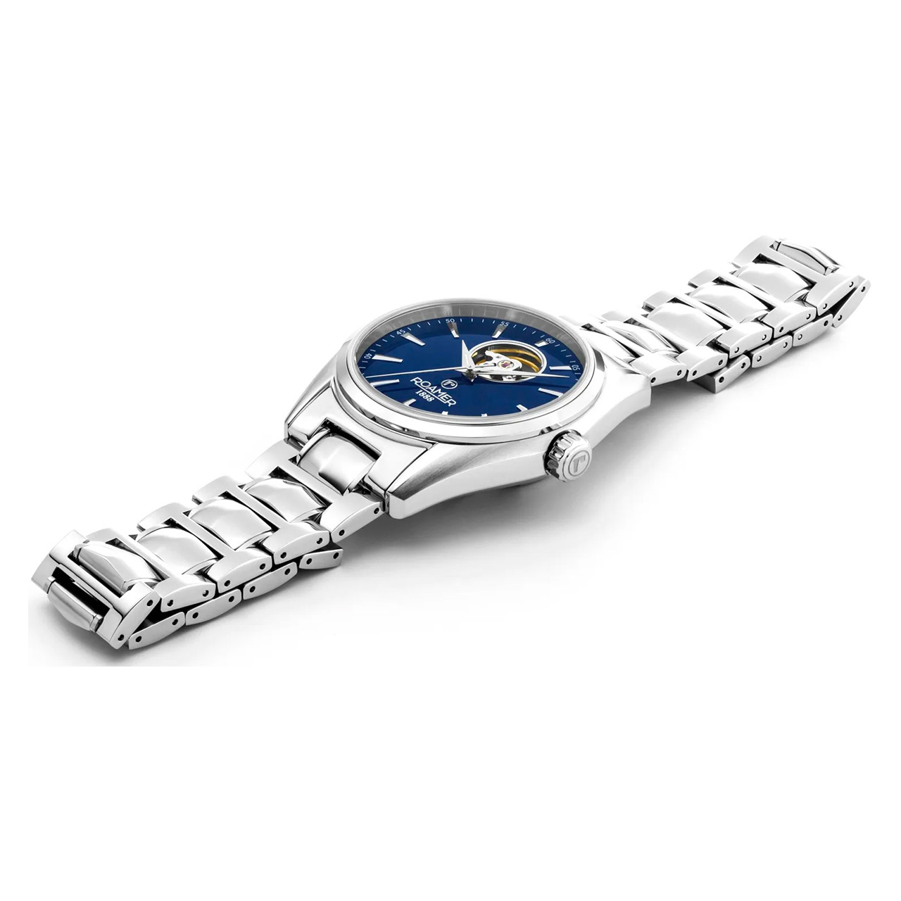 Корпус: Корпус выполнен из высококачественной нержавеющей стали 316L с полировкой и матовой шлифовкой - сатинированием. Синий циферблат с серебристыми стрелками и часовыми индексами Dauphine. Сапфировое стекло с антибликовым покрытием. Диаметр: 42мм. Водозащита: 100м.