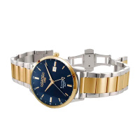 Корпус: Круглый корпус выполнен из нержавеющей стали, поверхности с матовой шлифовкой сатинированием и глянцевой полировкой, с частичным IP покрытием. Циферблат синего цвета с шлифовкой "солнечные лучи". Аппликация часовых индексов и стрелки с алмазной огранкой имеют полировку до зеркального блеска. Сапфировое стекло с антибликовым покрытием. Диаметр корпуса составляет 43 мм. Водостойкость 5 ATM.