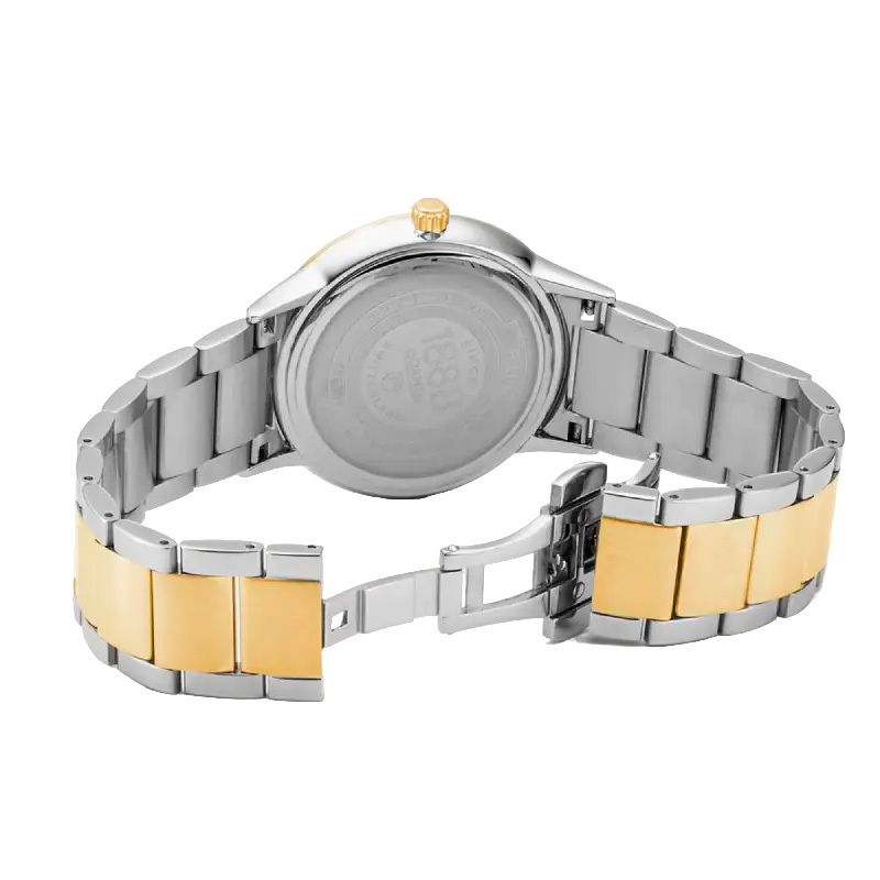 Ремешок: Браслет из нержавеющей стали с литыми звеньями, с частичным IP покрытием, браслетная застежка с тройным сложением – «бабочка». В комплект каждых часов входит дополнительный кожаный ремешок, который вы можете заменить с помощью удобной кнопки, без необходимости использования инструмента. Часы поставляются в специальной подарочной упаковке.