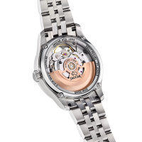 Корпус: Часы изготовлены из нержавеющей стали 316L, поверхности с матовой шлифовкой сатинированием и глянцевой полировкой. Этот тип стали, благодаря своему составу, особенно устойчив к коррозии, отличается высокой прочностью и устойчивостью к царапинам. Перламутровый циферблат с циркониевыми индексами. Сапфировое стекло с антибликовым покрытием, предотвращающее появление неприятных отражений, которые мешают правильному считыванию циферблата при определенных условиях освещения. Завинчивающаяся заводная головка. Диаметр: 34 мм. Водонепроницаемость: 50м.