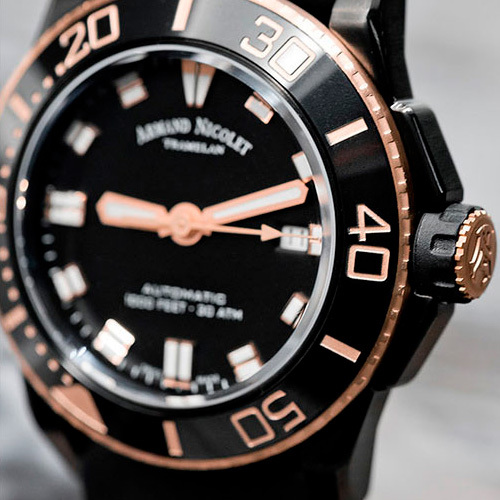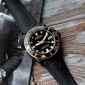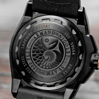 Корпус: Корпус из нержавеющей стали с DLC - покрытием чёрного цвета. Вращающийся керамический безель. Чёрный циферблат с золотистыми стрелками и часовыми индексами. Светонакопительный состав на стрелках и часовых индексах. Сапфировое стекло с антибликовым покрытием. Заводная головка с защитой. Завинчивающаяся задняя крышка. Диаметр 44 мм. Водозащита 300 м.