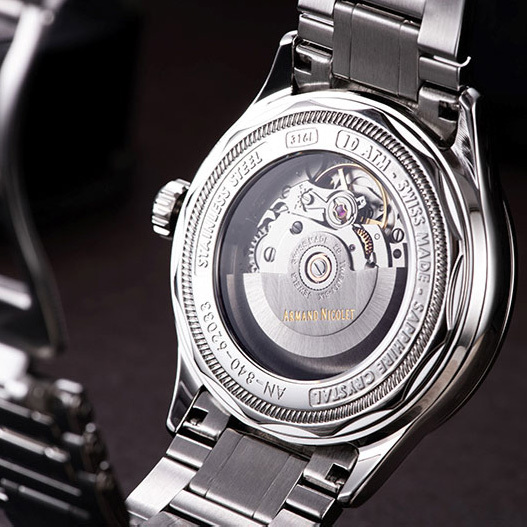 Корпус: Нержавеющая сталь. Серый циферблат, украшен декоративным узором - гильоше. Рифленая заводная головка. Сапфировое стекло с антибликовым покрытием, устойчивое к механическим повреждениям. Прозрачная задняя крышка. Диаметр 42 мм. Водозащита 100 м.