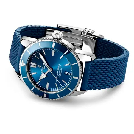 Корпус: Корпус из полированной стали, синий зубчатый вращающийся безель с индексами. Синий циферблат, ретро логотип бренда, стрелки с крупными люминесцентными вставками, полированные минутные индексы. Выпуклое сапфировое стекло с двусторонним антибликовым покрытием. Диаметр 44 мм. Водонепроницаемость 200 м.