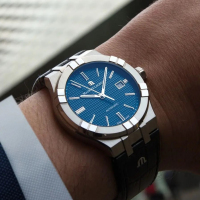 Корпус: Корпус и безель из матовой/полированной нержавеющей стали. Синий циферблат украшен гильоше, серебристые стрелки. Сапфировое стекло с антибликовым покрытием. Водонепроницаемость 200 метров, завинчивающаяся заводная коронка. Размер 42 мм.