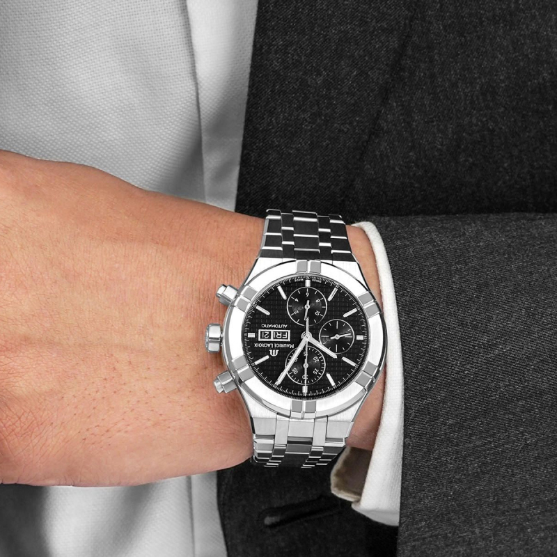Корпус: Корпус и безель из матовой/полированной нержавеющей стали. Чёрный циферблат украшен гильоше, серебристые стрелки. Сапфировое стекло с антибликовым покрытием. Водонепроницаемость 200 метров, завинчивающаяся заводная коронка. Размер 44 мм.