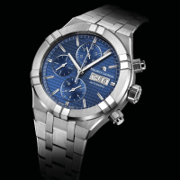 Корпус: Корпус и безель из матовой/полированной нержавеющей стали. Синий циферблат украшен гильоше, серебристые стрелки. Сапфировое стекло с антибликовым покрытием. Водонепроницаемость 200 метров, завинчивающаяся заводная коронка. Размер 44 мм.