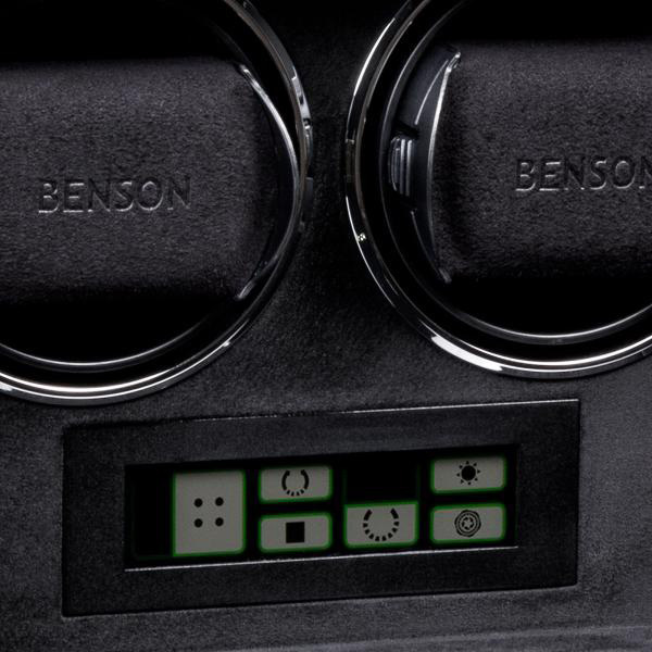 Механизм: Шкатулка с приводом (watch winders) прямоугольной формы, для хранения и поддержания в рабочем состоянии наручных часов с автоподзаводом в количестве 2 штук. Шкатулка оснащена мощным двигателем с бесшумным ходом и достаточно длительным сроком эксплуатации. Завод механизма часов осуществляет двигатель, совершающий поочерёдное вращение по часовой стрелке, против часовой стрелки и вращение в двух направлениях со скоростью 600; 900; 1200; 1500; 1800; 2100 оборотов в день. На жидкокристаллическом дисплее, созданном по эксклюзивной технологии, отражена функция контроля работы двигателя. Энергия для двигателя и жидкокристаллического дисплея поступает от сети переменного тока через входящий в комплект адаптер.