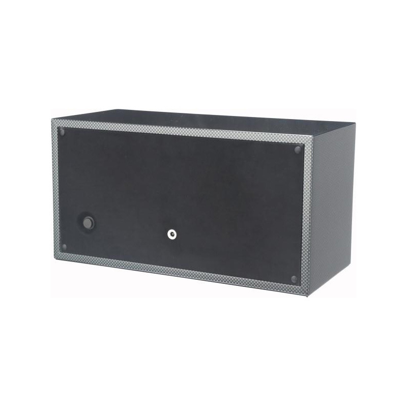 Материал: Корпус шкатулки оригинальной формы изготовлен из массива древесины твёрдых пород. Отделка корпуса – многослойное глянцевое покрытие лаком чёрного цвета с покрытием под карбон. Регулируемые по размеру часовые застежки гарантируют, что в механизм для намотки часов поместятся практически любые часы.