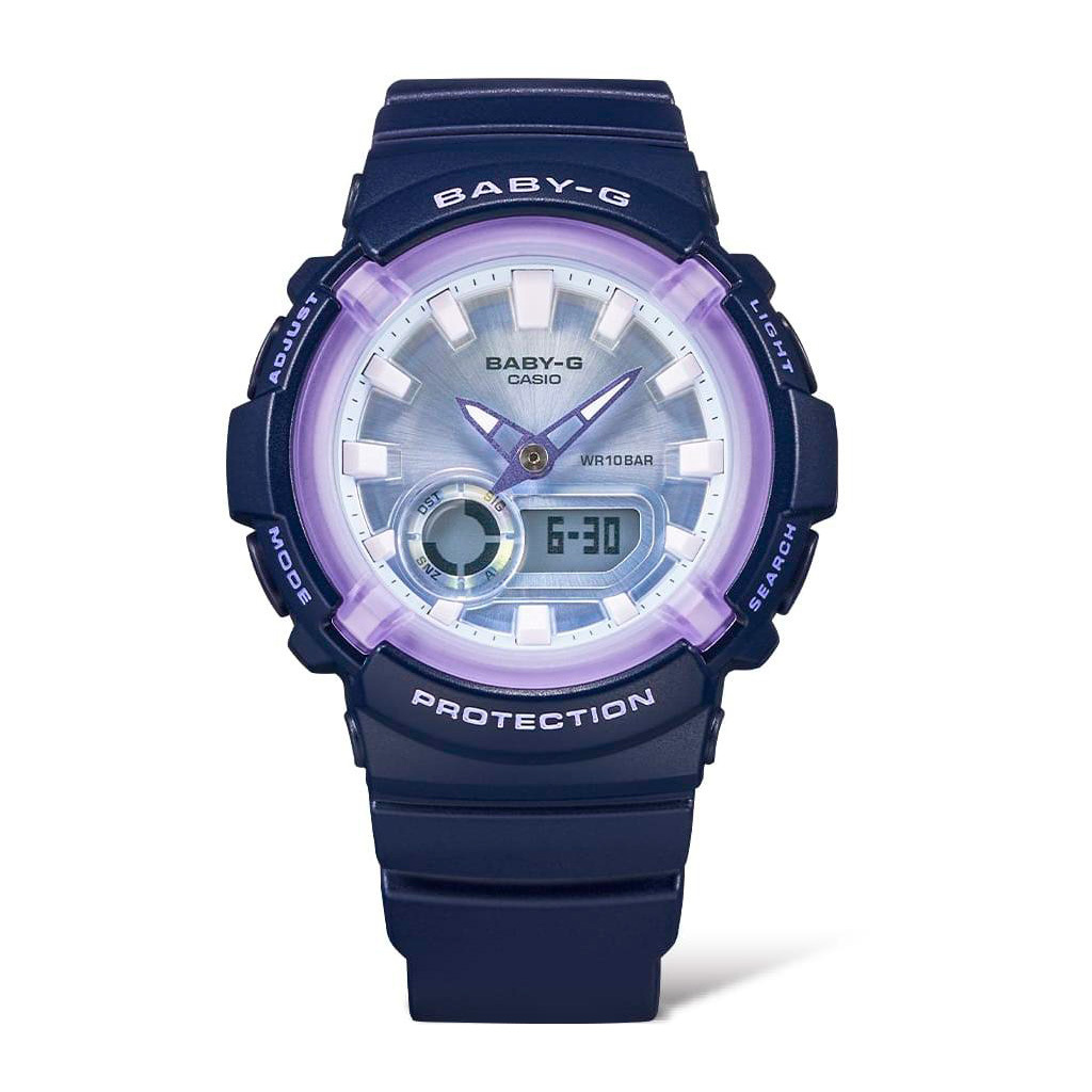 Корпус: Ударопрочный корпус выполнен из полимерного пластика фиолетового цвета. Необритовое светонакопительное покрытие обеспечивает длительное послесвечение в темноте даже после кратковременного нахождения на свету. Светодиодная лампа (Super Illuminator) выбираемая продолжительность освещения (1,5 секунды или 3 секунды), послесвечение. Прочное минеральное стекло. Размер корпуса (Д × Ш × В)