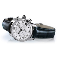 Функции: Индикация часов и минут при помощи центральных стрелок. Маленькая, отдельно вынесенная секундная стрелка и дата в положении "6 часов". Хронограф.