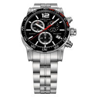 Функции: Индикация часов и минут при помощи центральных стрелок. Маленькая, отдельно вынесенная секундная стрелка в положении "6 часов", дата в положении "4 часа". Хронограф.