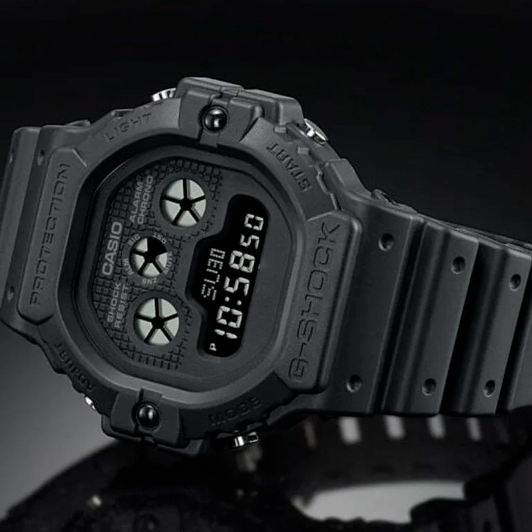 Корпус: Ударопрочный корпус выполнен из полимерного пластика монохромного черного цвета. Электролюминесцентная подсветка освещает весь циферблат, после отпускания кнопки свечение продолжается еще некоторое время. Световая индикация сигнала. Прочное минеральное стекло. Размер корпуса (Д × Ш × В) 51,4 × 46,8 × 15,5 мм. Водонепроницаемость 200 метров.