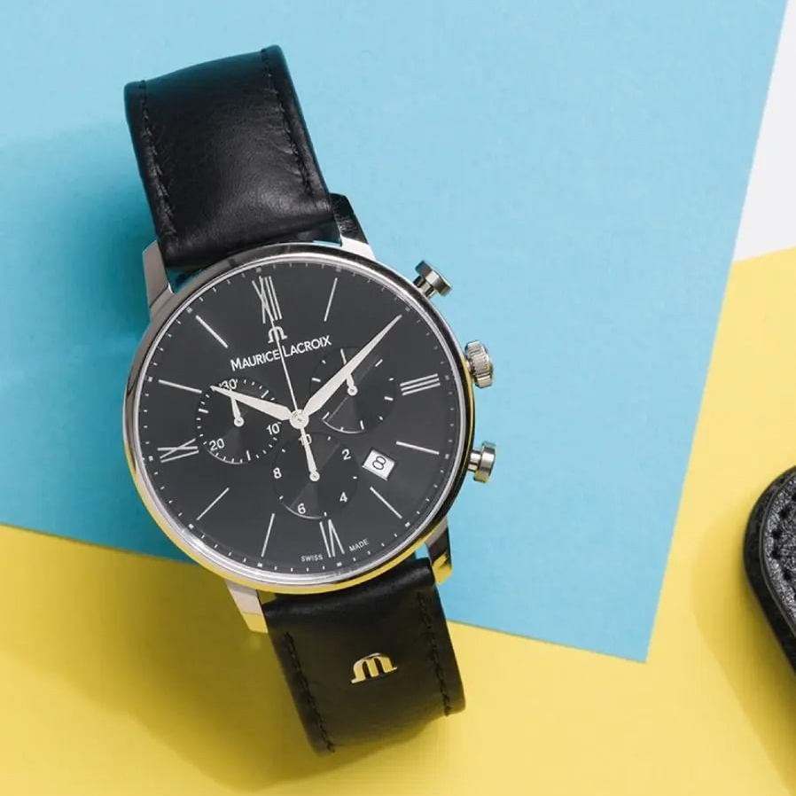 Функции: Индикация часов, минут при помощи центральных стрелок. Большое окошко даты. Хронограф.