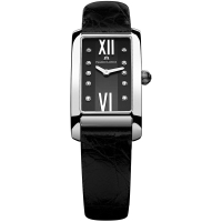 Корпус: Корпус из нержавеющей стали. Чёрный циферблат с серебристыми стрелками, украшен 10 бриллиантами. Сапфировое стекло. Размер 20,9х39 мм. Водонепроницаемость 50 метров.