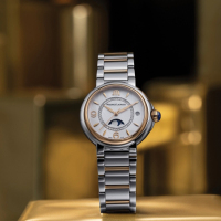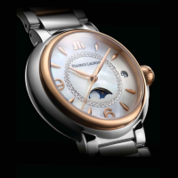 Корпус: Корпус и безель из нержавеющей стали с частичным PVD - покрытием из золота. Перламутровый циферблат украшен бриллиантами (46 штук) (? 0,80мм, SI, Wesselton, 0,124 карата). Стрелки и часовые индексы с покрытием. Выпуклое сапфировое стекло с антибликовым покрытием. Водонепроницаемость 30 метров. Размер 32 мм.