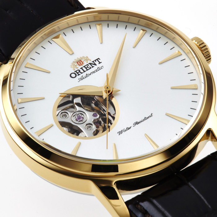 Корпус: Корпус из высококачественного стального сплава с высокими антикоррозийными свойствами с IP покрытием цвета желтого золота. Циферблат белого цвета с открытым балансом хода. Стрелки и метками в виде штрихов с золотистого цвета. Сапфировое стекло устойчивое к царапинам. Завинчивающаяся прозрачная задняя крышка. Диаметр корпуса: 41 мм. Толщина: 12 мм. Водонепроницаемость: 50 м.
