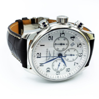 Функции: Индикация часов, минут при помощи центральных стрелок. Маленькая, отдельно вынесенная, секундная стрелка. 30-ти минутный и 12-ти часовой счетчики хронографа, дата в отдельном окошке.