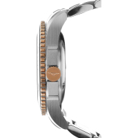 Корпус: Корпус из нержавеющей стали. Черный циферблат. Сапфировое стекло с антибликовым покрытием. Светонакопитель на индексах и стрелках. Завинчивающиеся задняя крышка и заводная головка. Однонаправленно вращающийся безель из черной керамики и стали с PVD-покрытием из розового золота. Диаметр 41 мм. Водозащита 300 м.