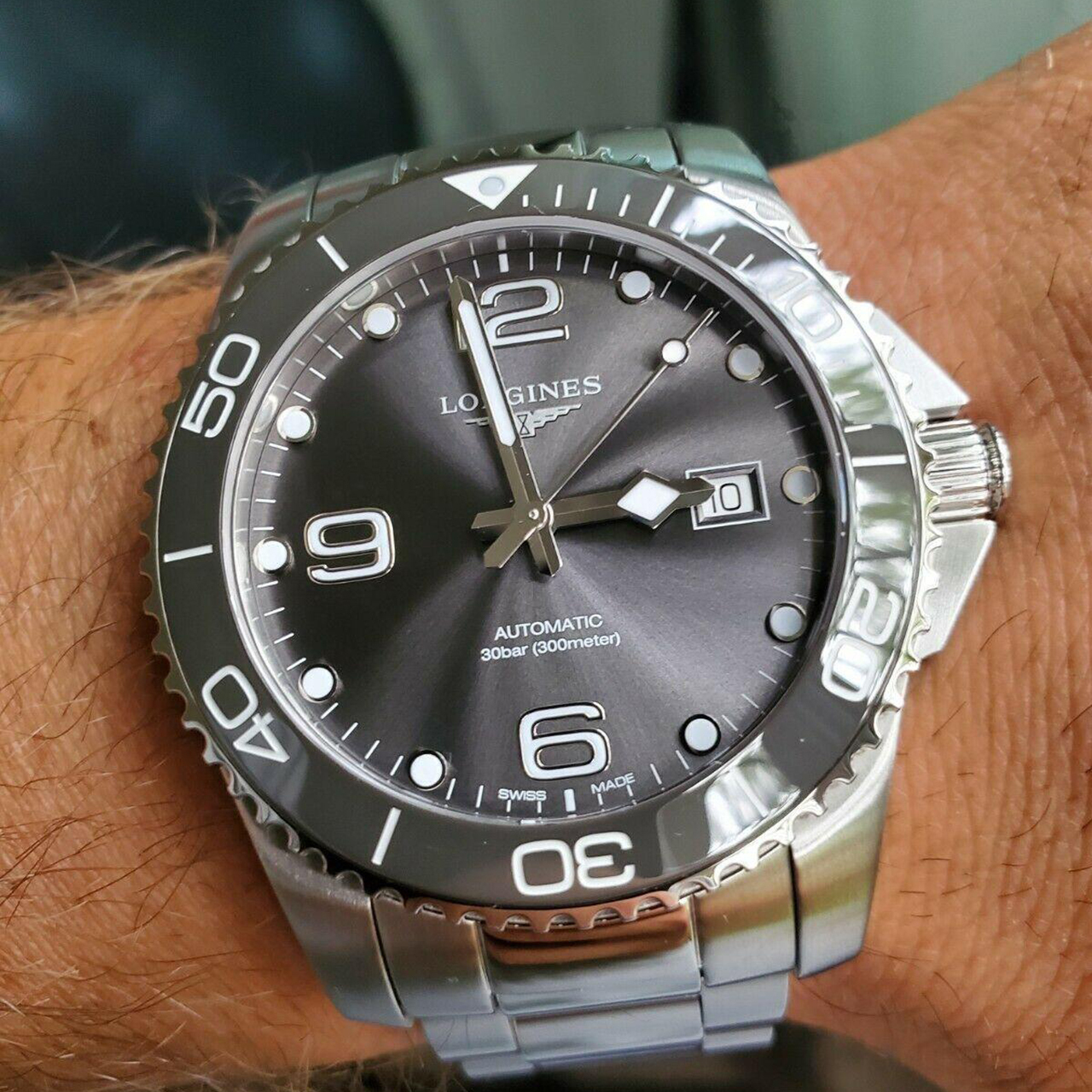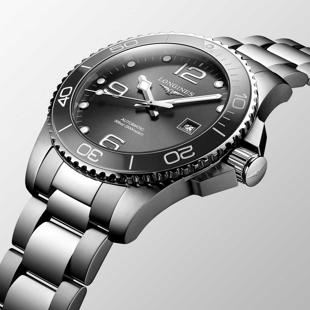 Корпус: Корпус выполнен из высококачественной стали 316L. Однонаправленный безель вращается со щелчками только в направлении против хода стрелок, боковая грань с ребристой насечкой, фронтальная поверхность из керамики с контрастной разметкой, на отметке “12 часов” находится капсула со светящимся в темноте фотолюминесцентным элементом. Серый циферблат с узором sunray. Посеребренные полированные стрелки с покрытием Super-LumiNova®. Устойчивое к царапинам сапфировое стекло с многослойным антибликовым покрытием с обеих сторон. Диаметр: 41 мм. Водонепроницаемость: 300 метров, завинчивающаяся заводная коронка.