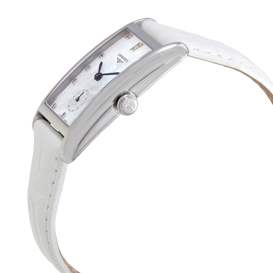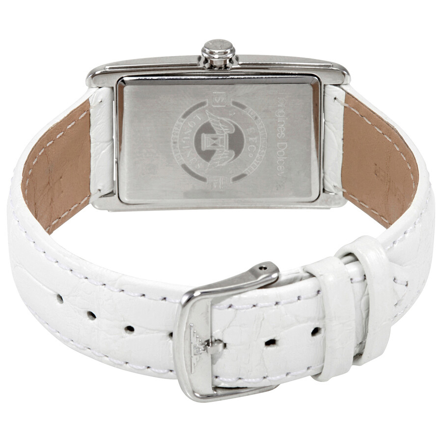 Корпус: Нержавеющая сталь, сапфировое стекло, 13 бриллиантов. Размер 23x37 мм, водонепроницаемость 30 метров. Циферблат – перламутровый белый.