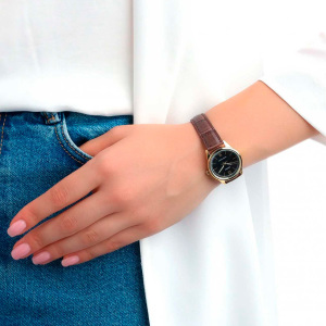 Ремешок: Кожаный ремешок коричневого цвета с классической застежкой.