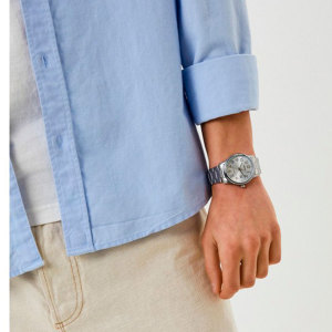 Ремешок: Браслет из нержавеющей стали, с тройной раскладывающейся застежкой.