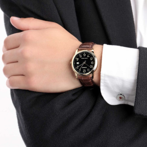 Корпус: Корпус часов выполнен из латуни с покрытием. Циферблат чёрного цвета с метками в виде арабских цифр. Прочное минеральное стекло обеспечит защиту часов от повреждений. Габаритные размеры: 37х44мм, толщина 9,6мм, вес 44г. Водонепроницаемость 30 м.