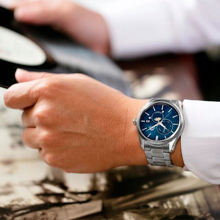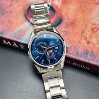 Корпус: Корпус из высококачественного стального сплава с высокими антикоррозийными свойствами. Циферблат синего цвета с часовыми метками в виде штрихов. Сапфировое стекло устойчивое к царапинам. Завинчивающаяся прозрачная задняя крышка. Диаметр корпуса: 41,5 мм. Толщина: 12 мм. Водонепроницаемость: 50 м.